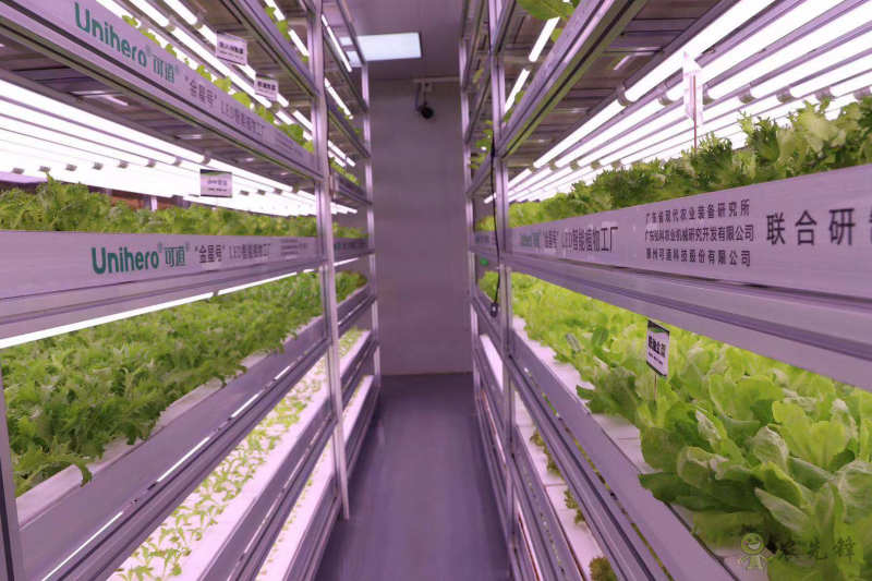 可道移動箱體型智能植物工廠利用20尺、40尺型便于流動運輸保溫殼體或者是火車車廂,結構分設備區和種植區,極大程度優化空間和種植面積。