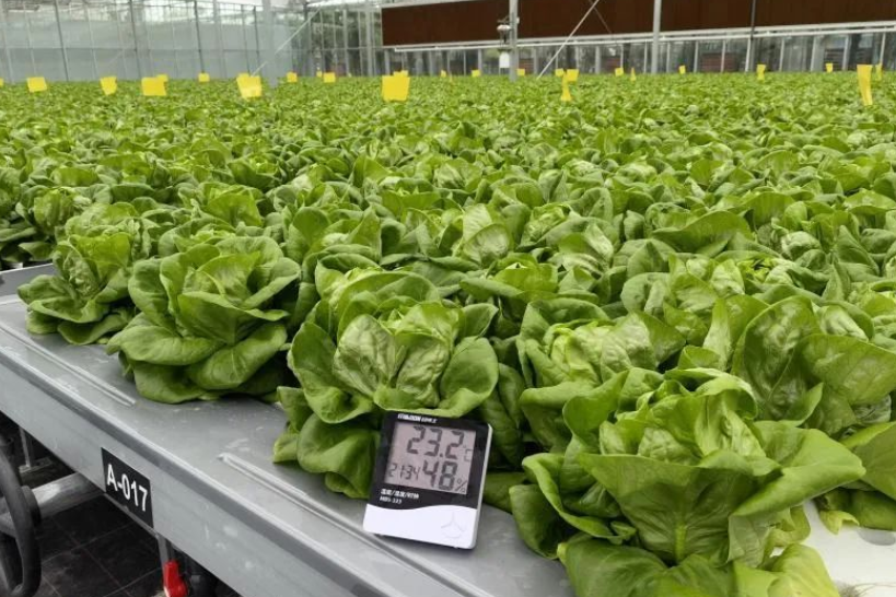 走進京東方廊下鎮(zhèn)特色蔬菜智聯(lián)工廠,一排排綠油油的奶油生菜“排排坐”,散發(fā)出蔬菜自身所帶的清香“體味”。這個味道可不是后期加工形成的,是因為這個工廠里沒有土壤和飛蟲,因此也聞不到各種肥料的刺鼻味道。敞亮、高聳的大棚里,盡收眼底的都是綠色蔬菜,感受到的都是高科技的種植技術(shù)和隨采隨吃的新鮮食用體驗感。