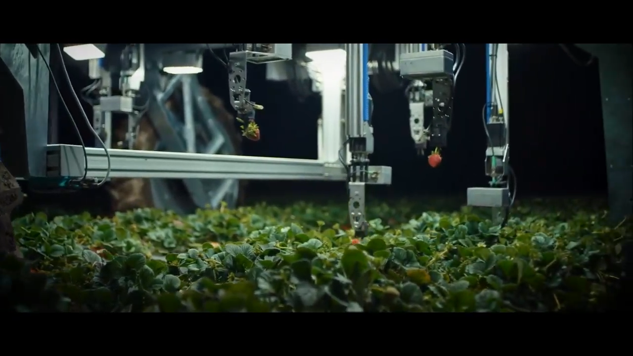 由于西班牙的南部是一個大型的生產(chǎn)草莓的農(nóng)場,AGROBOT的工程師們就擺在他們面前的采摘問題,設(shè)計出了解決方案,發(fā)明了這臺自動化收割機AGROBOT。