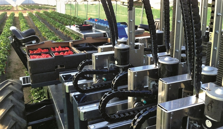 由于西班牙的南部是一個大型的生產草莓的農場,AGROBOT的工程師們就擺在他們面前的采摘問題,設計出了解決方案,發明了這臺自動化收割機AGROBOT。